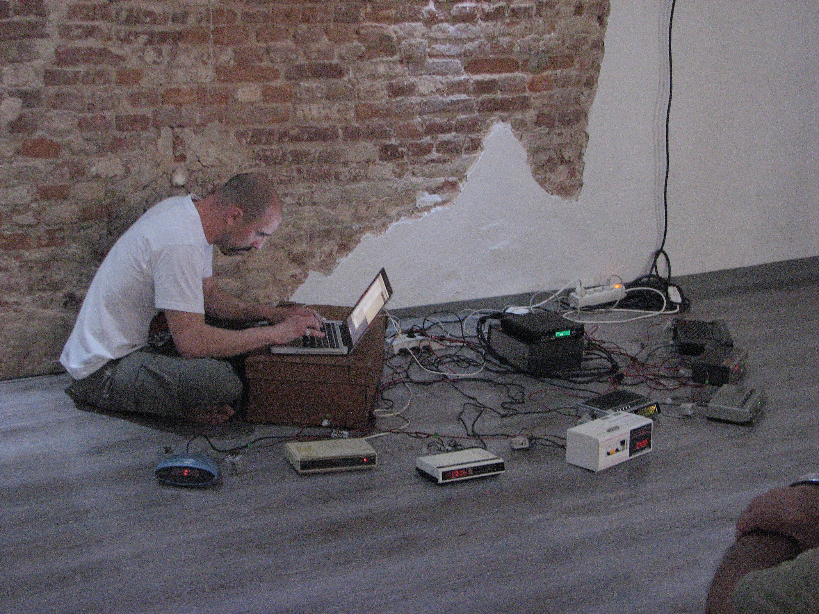 We opened our new lab at the Department of Humanities (StudiUm) with a concert dedicated to improvisation, called Macchine all’impronta. Great friends musicians participated and we did two of my pieces, Annuario telefonico (with Federico Marchesano, Stefano Risso, Luca Morino and Francesco Bianchi) and Minute di cronometria (with Carlo Barbagallo, Dario Bruna, Amos Cappuccio playing my electromechanical percussion setup, special guest Simone Pappalardo and Jean-François Laporte).